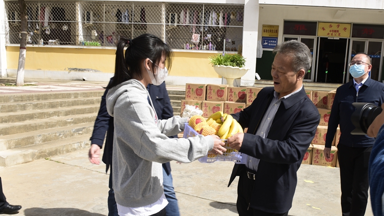 為確保同學(xué)們度過(guò)一個(gè)溫馨、和諧、快樂(lè)的五一假期,學(xué)校精心準(zhǔn)備了水果禮包。5月1日上午,校領(lǐng)導(dǎo)張志昌、彭虎軍、劉寶盈、王新軍、郭瑾分別深入北新街校區(qū)和丹江校區(qū),為萬(wàn)余名在校學(xué)生送去蘋果、香蕉,以及節(jié)日的祝福。校領(lǐng)導(dǎo)將每份禮物送到學(xué)生手中,告訴同學(xué)們,學(xué)校是一個(gè)大家庭,每個(gè)生活場(chǎng)所都是我們抗擊疫情的主陣地,每位師生都是我們抗擊疫情的主力軍,希望大家積極配合學(xué)校疫情防控工作要求,安排好五一假期學(xué)習(xí)生活...