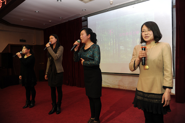 左曉民現(xiàn)場表演了歌曲合唱《十五的月亮》,向全院女教職工送上了節(jié)日的祝福。