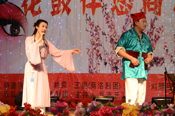 4月10日晚,由藝術(shù)系主辦的“花鼓伴您商洛行” ---王紅梅商洛花鼓教學(xué)改革實(shí)踐成果匯報(bào)音樂(lè)會(huì)在大學(xué)生活動(dòng)中心隆重舉行。校領(lǐng)導(dǎo)左曉民、王思懷、劉建林、魏書(shū)堂,藝術(shù)系師生和校內(nèi)外花鼓戲迷觀看了表演。商洛電視臺(tái)等地方媒體也現(xiàn)場(chǎng)進(jìn)行了采訪(fǎng)報(bào)道。