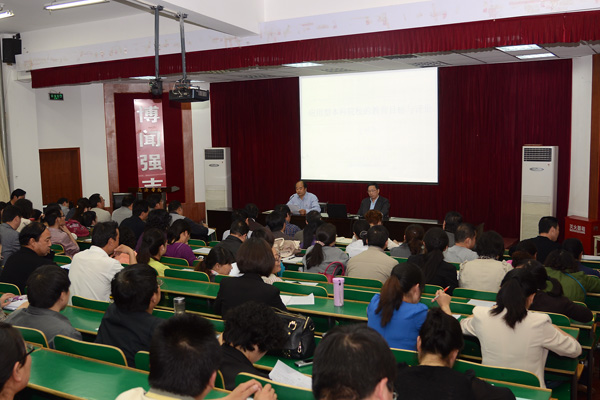 為了推動我校“怎樣建設(shè)好應(yīng)用型本科院?!贝笥懻撋钊腴_展,促進師生了解應(yīng)用型本科院校的本質(zhì)特點、發(fā)展戰(zhàn)略與教育目標,5月10日,宣傳部、教務(wù)處和人文社會科學(xué)系特邀廈門大學(xué)博士生導(dǎo)師、教育部普通高等學(xué)校教學(xué)工作水平評估專家組成員史秋衡教授,為我校黨委中心學(xué)習(xí)組成員,各系部、各部門黨政負責(zé)人作了題為《地方本科院校中長期發(fā)展戰(zhàn)略若干思考》的主題報告,為中級職稱以上教師和部分學(xué)生作了題為《應(yīng)用型本科院校教育目標與評價》的專題報告。校黨委書記張繼良、副院長劉建林分別主持了兩場報告會。