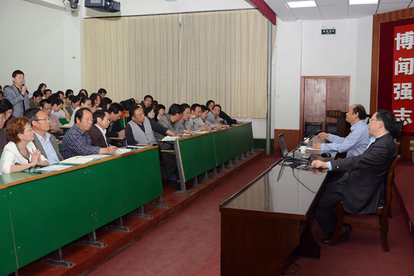 在上午的報告中,史秋衡教授從“關(guān)于規(guī)劃的學(xué)理、政策與組織視角”、“規(guī)劃的目標與院校使命”、“規(guī)劃的任務(wù)與院校遠景”、“國家卓越與院校的核心價值定位”“商洛學(xué)院發(fā)展的要素任務(wù)”等五個方面介紹了了地方本科院校中長期發(fā)展戰(zhàn)略的若干思考和見解。他指出,當(dāng)前我國高等教育發(fā)展迅速,地方性本科院校建設(shè)處于邊研討邊實踐的過程中,亮點很多,對我國建設(shè)最為重要。我國教育發(fā)展頂層設(shè)計的靈魂是鄧小平同志提出的“三個面向”,高校要率先實現(xiàn)現(xiàn)代化,面向長遠、面向未來,處理好改革創(chuàng)新與發(fā)展的關(guān)系。依據(jù)對地方性本科院校“扶需、扶優(yōu)、扶特”的國家原則,地方性應(yīng)用型本科院校人才培養(yǎng)的重點是培養(yǎng)服務(wù)區(qū)域經(jīng)濟發(fā)展、地方產(chǎn)業(yè)轉(zhuǎn)型升級、企業(yè)技術(shù)創(chuàng)新所需的應(yīng)用型、技能型、復(fù)合型人才。