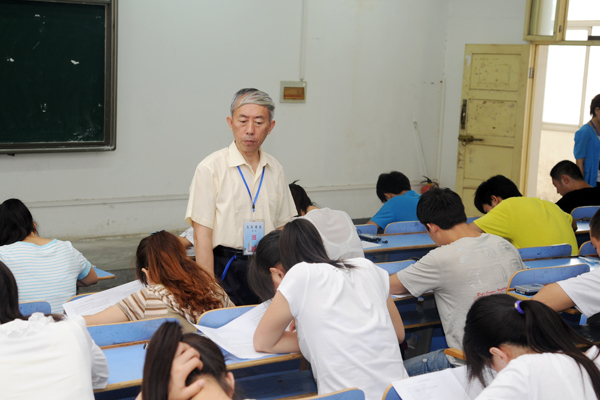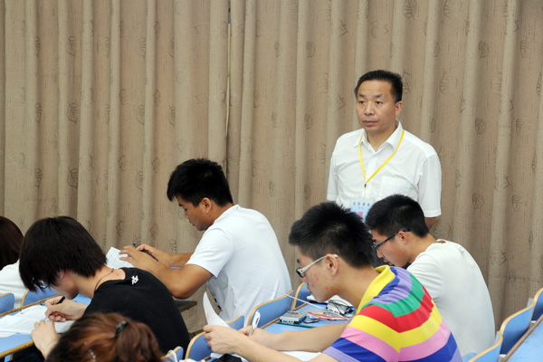 在大學(xué)英語(yǔ)考試現(xiàn)場(chǎng),校領(lǐng)導(dǎo)逐個(gè)考場(chǎng)察看學(xué)生應(yīng)考情況,并詳細(xì)了解了考場(chǎng)秩序、考風(fēng)考紀(jì)、考務(wù)工作等方面的情況。