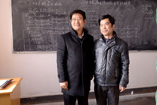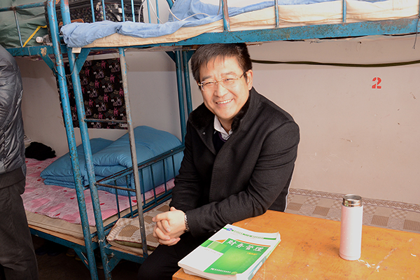 王建軍在曾經(jīng)學(xué)習(xí)過的教室留念