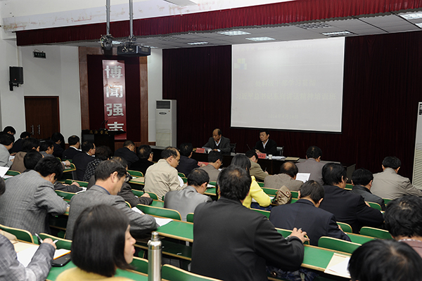 為提高我校黨員領(lǐng)導(dǎo)干部的思想理論素養(yǎng)和工作水平,更好地推進(jìn)學(xué)校黨建工作和各項(xiàng)事業(yè)的發(fā)展,按照省委高教工委的部署,我校舉辦了處科級(jí)干部學(xué)習(xí)習(xí)近平總書(shū)記系列講話(huà)精神培訓(xùn)班。4月16日,培訓(xùn)班正式開(kāi)班。校黨委書(shū)記張景書(shū)作了題為《黨要管黨,從嚴(yán)治黨》的首場(chǎng)專(zhuān)題報(bào)告。黨委副書(shū)記、校長(zhǎng)劉建林主持大會(huì)并作動(dòng)員講話(huà)。校領(lǐng)導(dǎo)王思懷、魏書(shū)堂,處科級(jí)領(lǐng)導(dǎo)干部、思想政治理論課教學(xué)研究部教師近200人參加了培訓(xùn)。