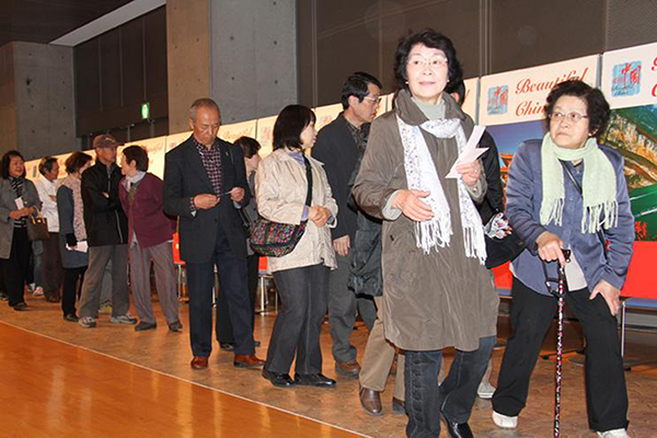 高山市當(dāng)?shù)孛癖娕抨?duì)入場(chǎng)觀看繪畫(huà)展開(kāi)幕式