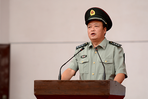 校黨委副書記左曉民代表學(xué)校向承擔(dān)軍訓(xùn)任務(wù)解放軍西安政治學(xué)院及全體教官致謝,并向參加軍訓(xùn)并取得良好成績的軍訓(xùn)團(tuán)體官兵表示親切的慰問和熱烈地祝賀。他在講話中指出,2014級全體同學(xué)以激昂的斗志、刻苦的精神進(jìn)行了隊(duì)列隊(duì)形訓(xùn)練、整理內(nèi)務(wù)訓(xùn)練、操槍訓(xùn)練等規(guī)定的訓(xùn)練內(nèi)容,達(dá)到了軍訓(xùn)的預(yù)期目標(biāo);大家在認(rèn)真學(xué)習(xí)國防知識和軍事技能的同時,服從命令、聽從指揮、嚴(yán)守紀(jì)律、尊敬教官,養(yǎng)成了雷厲風(fēng)行的良好作風(fēng),強(qiáng)化了集體榮譽(yù)感,增添了一分軍人的陽剛之氣。左曉民要求全體新生在今后的學(xué)習(xí)生活中能夠保持和鞏固軍訓(xùn)成果,學(xué)習(xí)和發(fā)揚(yáng)人民解放軍的優(yōu)良傳統(tǒng)和作風(fēng),為實(shí)現(xiàn)中華民族偉大復(fù)興的中國夢做出自己應(yīng)有的貢獻(xiàn)。