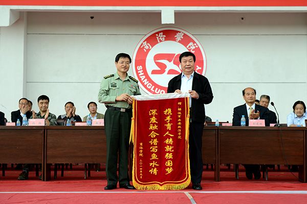 為增進(jìn)兩校之間的友誼,黨委書記張景書代表我校向西安政治學(xué)院贈送了“攜手育人鑄就強(qiáng)國夢,深度融合譜寫魚水情”的錦旗。大會結(jié)束后,校長劉建林專程慰問了全體承訓(xùn)官兵,并與黨委副書記左曉民一起陪同趙歲步副院長和楊定友大校參觀了我校校園。