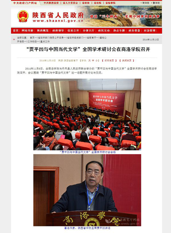 商洛新聞網(wǎng):《百名學(xué)者齊聚商洛 研討“賈平凹與中國(guó)當(dāng)代文學(xué)”》