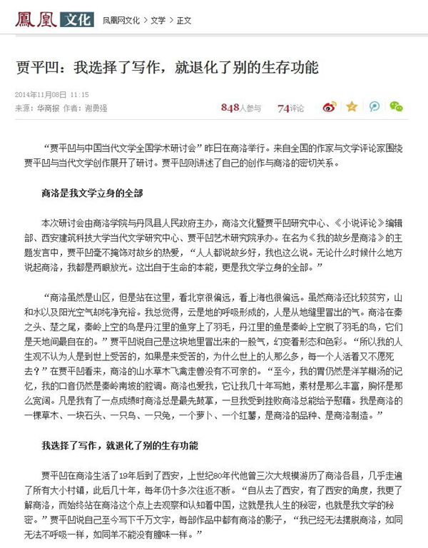 三秦網(wǎng):《近百學(xué)者商洛研討“賈平凹與中國(guó)當(dāng)代文學(xué)”》