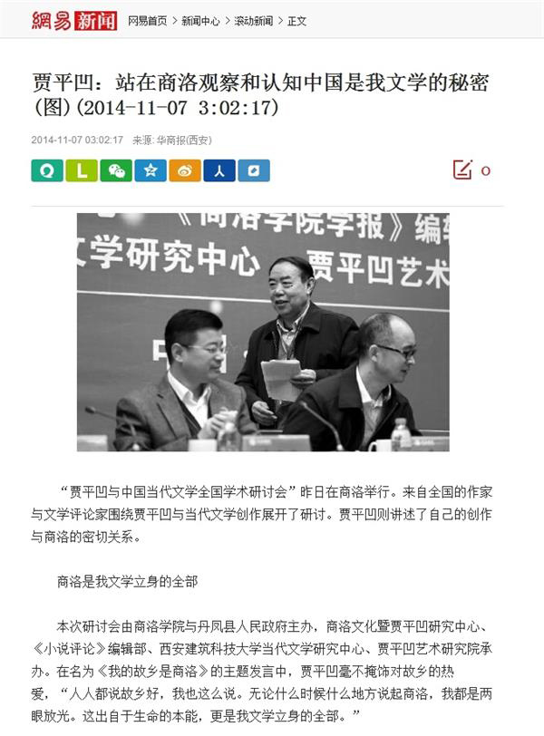 網(wǎng)易:《賈平凹:站在商洛觀察和認(rèn)知中國(guó)是我文學(xué)的秘密》
