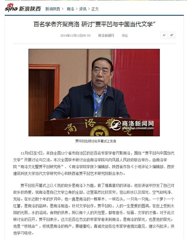 新浪:《百名學(xué)者齊聚商洛 研討“賈平凹與中國(guó)當(dāng)代文學(xué)”》
