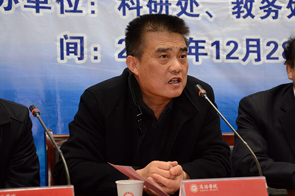 校黨委書記張景書在致辭中指出,近年來,我??蒲泄ぷ靼l(fā)展較快,科研平臺(tái)建設(shè)取得突破,一批科研成果獲得各級(jí)政府獎(jiǎng)勵(lì),教師發(fā)表的學(xué)術(shù)論文被國際權(quán)威檢索機(jī)構(gòu)收錄百余篇,在科研服務(wù)地方工作中也取得了顯著成果。張景書說,人才培養(yǎng)、科學(xué)研究、社會(huì)服務(wù)和文化傳承創(chuàng)新是高校的四大職能和任務(wù)??茖W(xué)研究是提高人才培養(yǎng)質(zhì)量的重要環(huán)節(jié),是社會(huì)服務(wù)、文化傳承創(chuàng)新的主要途徑,科研水平也是學(xué)校辦學(xué)實(shí)力的真正體現(xiàn)。只有高度重視科研工作,不斷提高科研水平,產(chǎn)出高質(zhì)量的學(xué)術(shù)成果,才能使學(xué)校在競爭中有一席之地。張景書指出,召開這次學(xué)術(shù)年會(huì)的目的就是為廣大教師搭建科研學(xué)術(shù)交流平臺(tái),展示科研學(xué)術(shù)成果,濃厚科研學(xué)術(shù)氛圍,增強(qiáng)科研學(xué)術(shù)意識(shí)。希望大家珍惜這次學(xué)習(xí)交流的機(jī)會(huì),認(rèn)真聆聽專家的報(bào)告,認(rèn)真聽取其他教師的發(fā)言,在學(xué)術(shù)探討和觀點(diǎn)碰撞中提升分析問題解決問題能力,提高全體教師的科研水平,支持我校教學(xué)質(zhì)量和服務(wù)地方不斷取得新突破。