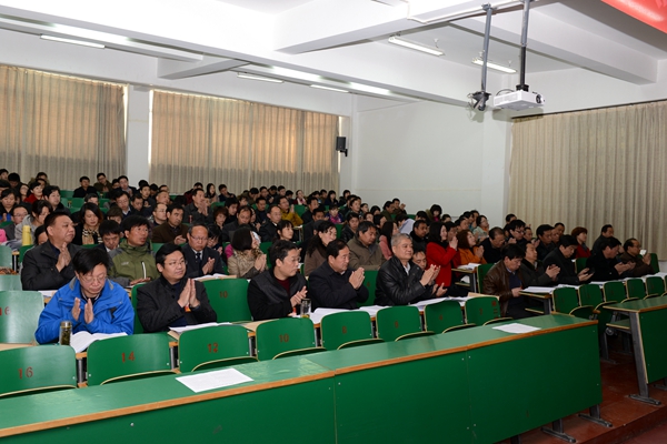 報告強(qiáng)調(diào),2015年是我校全面深化教育教學(xué)改革的關(guān)鍵之年,是全面完成“十二五”規(guī)劃的收官之年,全體教職員工必須要有前所未有的氣魄、勇氣、膽識和擔(dān)當(dāng),不斷強(qiáng)化“學(xué)習(xí)、法制、擔(dān)當(dāng)、執(zhí)行、導(dǎo)向”五種意識;落實“堅持正確的政治方向、堅持學(xué)校發(fā)展為第一要務(wù)、堅持用團(tuán)結(jié)品質(zhì)凝聚學(xué)校發(fā)展的正能量、堅持廉政勤政,風(fēng)清氣正、堅持個人價值與學(xué)校目標(biāo)價值趨同”五個堅持;把握好“發(fā)展與民生、內(nèi)部管理挖潛與外部支持爭取、人才引進(jìn)與崗位成才、思想政治教育與政策制度引導(dǎo)、‘要我干’與‘我要干’”五個關(guān)系,突出“政治強(qiáng)、工作實、標(biāo)準(zhǔn)高、服務(wù)真、作風(fēng)硬”的五字工作準(zhǔn)則。萬眾一心,同心同德,以勇于擔(dān)當(dāng)?shù)臍馄呛惋枬M的工作熱情,以抓鐵有痕、踏石留印的良好作風(fēng)全身心投入到學(xué)校事業(yè)中去,切實提高工作執(zhí)行力,保證工作落實,全面完成2015年工作任務(wù),為把我校早日建成特色鮮明、多學(xué)科協(xié)調(diào)發(fā)展的應(yīng)用型本科院校而努力奮斗!