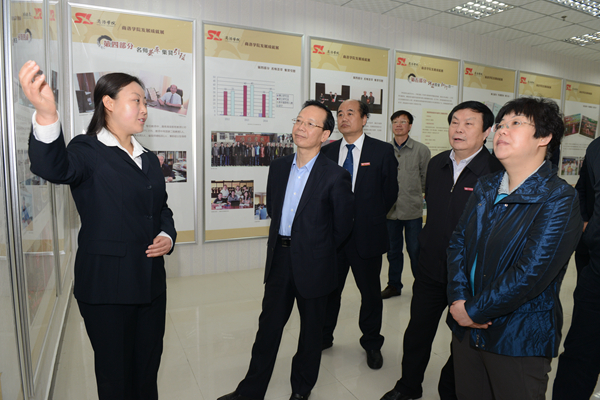 學校辦公室、宣傳部、發(fā)展規(guī)劃與交流合作處、教務處、科研處相關負責人陪同視察。