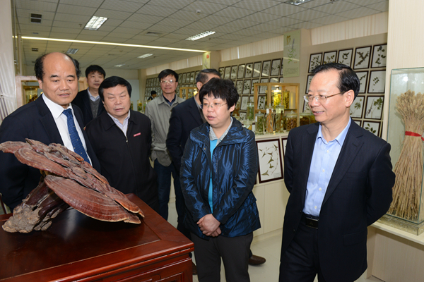 在學校發(fā)展成果展廳,孟軍深情地回憶起他1978至1980年間在我校學習的美好時光,對學校今日翻天覆地的變化給予了充分肯定。在秦嶺植物標本陳列室,孟軍和劉榮賢興致勃勃地參觀了“五大商藥”等標本,了解了我校生物醫(yī)藥與食品工程學院、中藥材GAP科研工程中心、秦嶺植物良種繁育中心培育及合作研制的小麥新品種和各類特色產(chǎn)品。