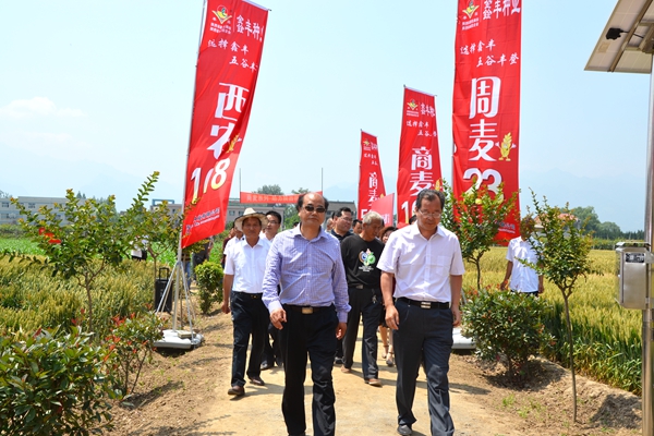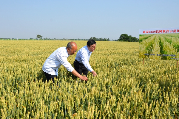 在咸陽市涇陽縣興隆鎮(zhèn),張景書深入商麥“5226”示范田,與商麥種植示范戶親切交談,觀摩了商麥的抗旱性、長勢、落黃及籽粒飽滿情況,了解了商麥“5226”在今年多雨季節(jié)的抗病情況、產(chǎn)量及推廣面積。涇陽縣現(xiàn)代種業(yè)公司經(jīng)理藏喜詳細(xì)介紹了商麥“5226”在渭北旱塬、甘肅隴南的實(shí)驗(yàn)情況,并表示“商麥5226”有望成為渭北旱塬地區(qū)小麥主栽品種。