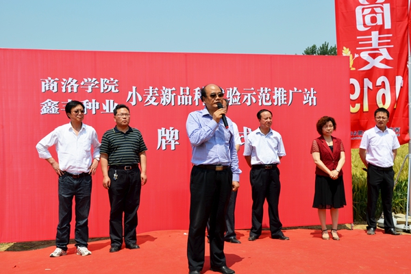 劉建林代表學(xué)校對我校周至縣小麥新品種試驗(yàn)示范推廣站正式揭牌表示熱烈祝賀。劉建林指出,商洛學(xué)院近年來緊密結(jié)合當(dāng)?shù)刂鲗?dǎo)產(chǎn)業(yè),深入開展科學(xué)研究,加強(qiáng)科技成果轉(zhuǎn)化,尤其是在小麥育種方面取得了重要成果,通過周至小麥試驗(yàn)站的建立,可以進(jìn)一步發(fā)揮人才、技術(shù)優(yōu)勢,加快商麥“5226”、“1619”等品種的轉(zhuǎn)化步伐,更好地支持渭北旱塬、秦巴山區(qū)及陜西周邊地區(qū)小麥品種的更新?lián)Q代,力爭取得良好的經(jīng)濟(jì)效益和社會效益,為服務(wù)“三農(nóng)”做出貢獻(xiàn)。