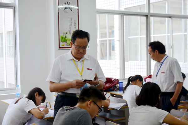 在考試現(xiàn)場,校領導逐個考場檢查了學生的應考情況,并詳細了解考場秩序、試卷制備及命題、考風考紀等方面的情況。