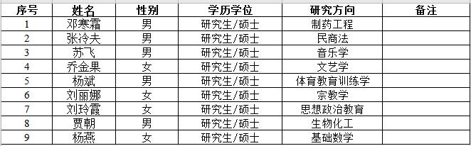 根據(jù)陜西省人社廳《關(guān)于陜西省事業(yè)單位公開招聘人員辦法》規(guī)定及《商洛學院2011年人才招聘計劃》,經(jīng)過資格審查、試講、專家面試等環(huán)節(jié)考察,并經(jīng)院長辦公會研究,同意招聘以下同志來我校工作,現(xiàn)予以公示。如有異議,請于2011年6月23日前向干部人事處或監(jiān)察室反映。