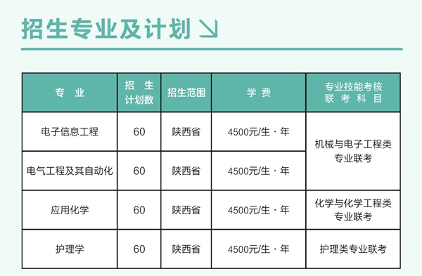 6.錄取辦法:擬報(bào)考我校的考生必須參加我校與西安文理學(xué)院、等六所院校組織的對(duì)應(yīng)專業(yè)技能考核聯(lián)考科目且考核成績(jī)合格,錄取時(shí),按照文化課統(tǒng)考成績(jī)從高分向低分投檔,文化課統(tǒng)考成績(jī)相同時(shí),優(yōu)先錄取專業(yè)技能考核成績(jī)較高的考生。(二)