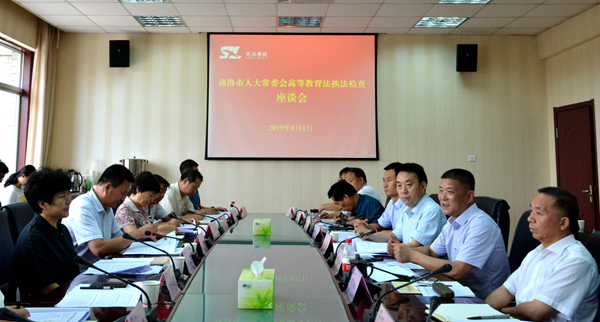 8月1日,商洛市人大常委會副主任劉淑慧率省市人大代表、相關(guān)單位負責(zé)人組成的檢查組,來我校開展高等教育執(zhí)法檢查工作。商洛市人民政府副市長李華,我校校長范新會、紀委書記王思懷、黨委副書記彭虎軍,副校長劉寶盈、劉勇出席匯報座談會。