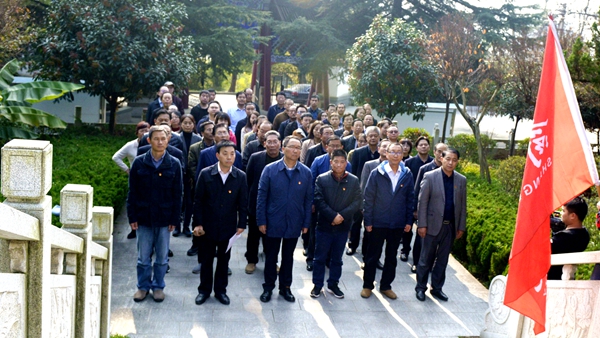 初冬的烈士陵園,蒼柏矗立、莊嚴(yán)肅穆。參加活動的87名黨員干部在巍然聳立的烈士紀(jì)念碑前肅立默哀,悼念革命烈士不朽英魂。黨委書記龍治剛、校長范新會代表全校黨員師生向革命烈士敬獻(xiàn)花籃,抒發(fā)對革命先烈的無限哀思和崇高敬意。全體黨員齊唱國歌,在龍治剛帶領(lǐng)下面對鮮紅的黨旗,重溫入黨誓詞,立志以實際行動踐行先烈們?yōu)橹袊嗣裰\幸福、為中華民族謀復(fù)興的初心使命。