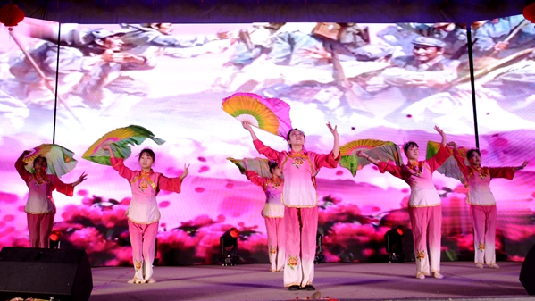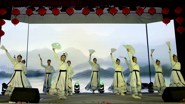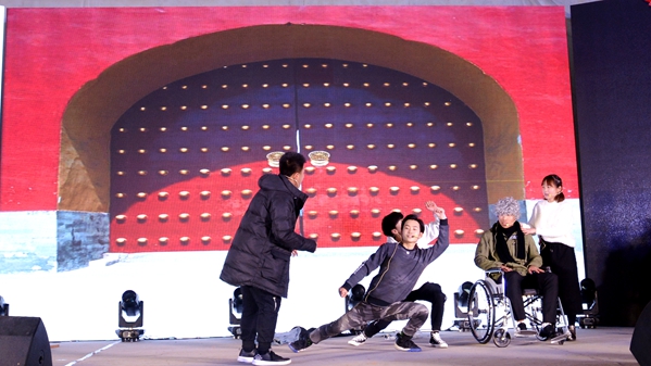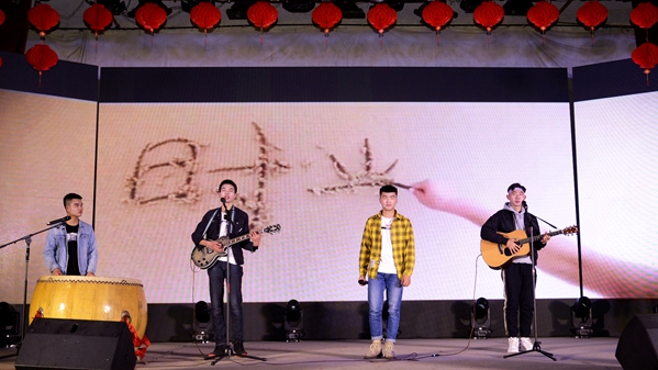 “家是最小國,國是千萬家”,臺下觀眾揮舞手中的小國旗與臺上演員熱情互動,在合唱歌曲《國家》的歌聲中表達中華兒女拳拳愛國情。哪有什么歲月靜好,只是有人替你負重前行,《我要去北京》以小品的方式致敬退伍老兵。靈動的少女在神秘的山林、悠揚的曲調(diào)中跳起《傣族舞韻》,電音歌曲《沒有理想的人不傷心》用跳動的音符震撼全場,舞蹈《映山紅》再現(xiàn)了那段崢嶸的紅色歲月,街舞《Swallow》再次引爆現(xiàn)場的歡呼聲、尖叫聲。神秘的魔術(shù)師和可愛的小丑共同帶來魔術(shù)表演《魔幻色彩》,帶給觀眾歡樂和驚嘆。以下雪的故宮為背景的歌舞表演《雪落下的聲音》,歌聲甜美、舞蹈優(yōu)雅、意境深遠,讓人賞心悅目。師生同臺表演的武術(shù)《風(fēng)云聚》集太極、格斗、跆拳道、雙截棍、散打為一體,展現(xiàn)了中華武術(shù)深邃的文化意蘊。在歌伴舞《不忘初心》悠揚的旋律中,晚會圓滿落幕,領(lǐng)導(dǎo)嘉賓與全體演職人員合影留念,共同祝愿商洛學(xué)院在新的一年逐夢前行、再創(chuàng)輝煌。