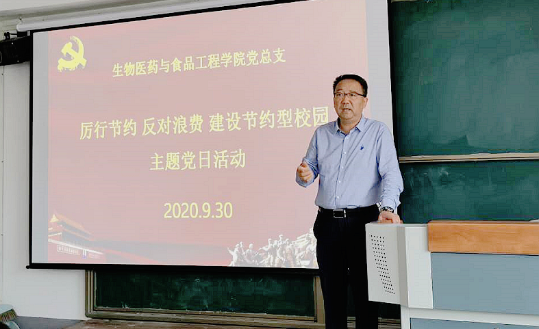 9月30日,校黨委書記龍治剛深入生物學院黨總支,參加 “厲行節(jié)約,反對浪費,建設節(jié)約型校園”主題黨日活動,帶領(lǐng)全體黨員學習了《中國共產(chǎn)黨基層組織選舉工作條例》及習近平總書記關(guān)于厲行節(jié)約、反對浪費重要指示精神,與大家一道學習觀看了《焦點訪談》“一粥一飯不易且重大”電視節(jié)目,并帶頭在“我倡議、我踐行”留言板上寫下“傳承美德、勤儉節(jié)約、珍惜糧食、從我做起”16字感言,教育引導黨員師生愛惜糧食、以勤儉節(jié)約為榮。