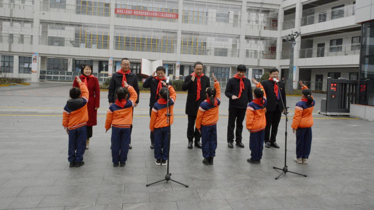 儀式伊始,小學生代表為與會領導嘉賓佩戴紅領巾。
