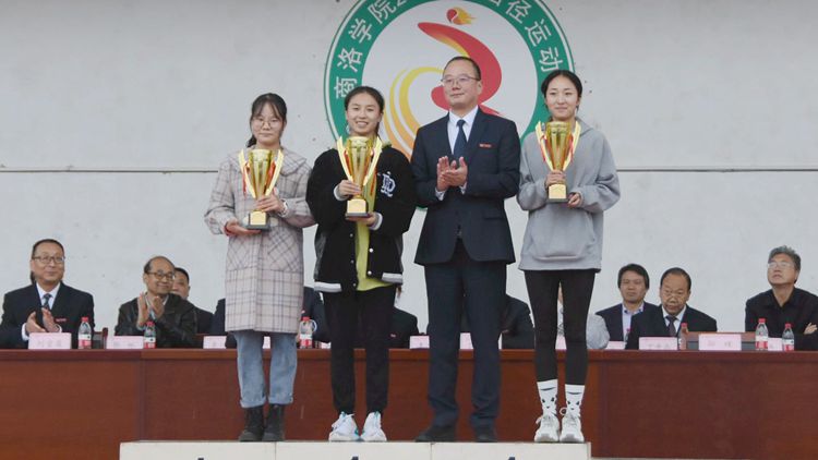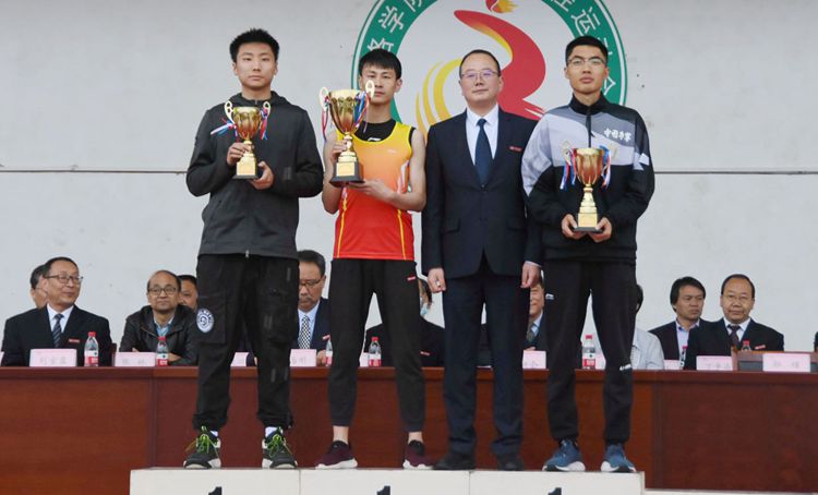 在熱烈的掌聲中,黨委書(shū)記龍治剛為獲得體育道德風(fēng)尚獎(jiǎng)的團(tuán)體頒獎(jiǎng),校長(zhǎng)范新會(huì)為男女團(tuán)體總分前三名頒獎(jiǎng),副校長(zhǎng)郭瑾為男子及女子團(tuán)體總分前三名頒獎(jiǎng)。