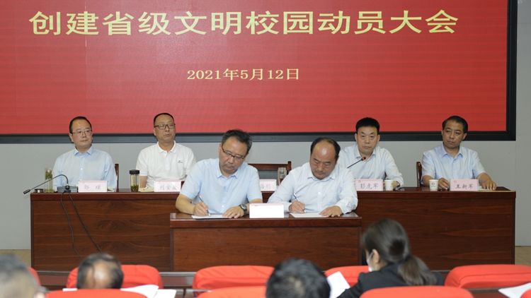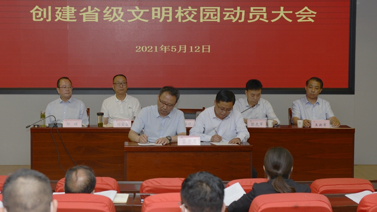 為扎實(shí)開展省級(jí)文明校園工作,充分營(yíng)造人人知曉創(chuàng)建、人人支持創(chuàng)建、人人參與創(chuàng)建的良好氛圍,確保各項(xiàng)創(chuàng)建工作任務(wù)高質(zhì)量高標(biāo)準(zhǔn)落實(shí),5月12日,我校召開創(chuàng)建省級(jí)文明校園動(dòng)員大會(huì)。校黨委書記、創(chuàng)建省級(jí)文明校園工作領(lǐng)導(dǎo)小組組長(zhǎng)龍治剛作動(dòng)員講話,黨委副書記、創(chuàng)建省級(jí)文明校園工作領(lǐng)導(dǎo)小組副組長(zhǎng)、辦公室主任彭虎軍主持大會(huì)并對(duì)創(chuàng)建工作進(jìn)行安排部署。全體校領(lǐng)導(dǎo),創(chuàng)建省級(jí)文明校園工作領(lǐng)導(dǎo)小組成員及全體副處級(jí)以上干部參加大會(huì)。