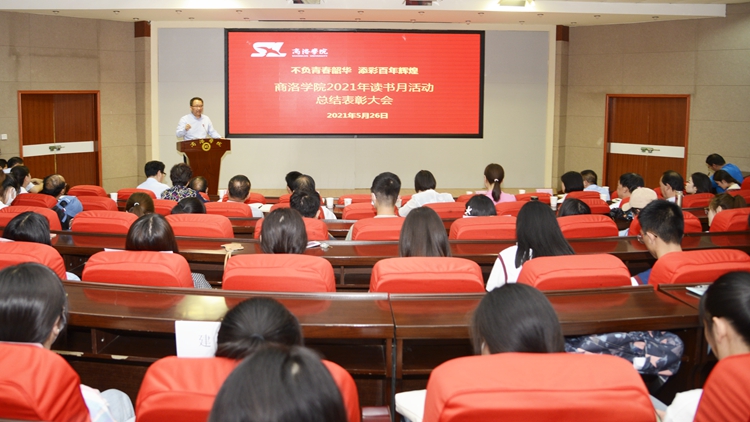 為慶祝中國(guó)共產(chǎn)黨成立100周年,強(qiáng)化黨史學(xué)習(xí)效果,提升校園文化建設(shè)水平,圖書館與教務(wù)處聯(lián)合開展了“不負(fù)青春韶華,添彩百年輝煌”讀書月活動(dòng)?;顒?dòng)開展以來,全校師生踴躍參與,總?cè)藬?shù)達(dá)到1850人,收到了良好效果。5月26日,我校舉辦讀書月活動(dòng)總結(jié)表彰大會(huì),總結(jié)活動(dòng)成效,表彰在“讀書月”期間表現(xiàn)優(yōu)異的學(xué)生。校黨委書記龍治剛出席大會(huì)并講話,黨委副書記彭虎軍宣讀表彰決定,副校長(zhǎng)王新軍主持大會(huì)。學(xué)生處、團(tuán)委、教務(wù)處、圖書館負(fù)責(zé)人,各二級(jí)學(xué)院黨總支書記,圖書館全體工作人員和學(xué)生代表150余人參加大會(huì)。