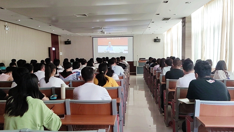 按照學(xué)校黨史學(xué)習(xí)教育工作安排,6月1日下午,我校舉辦第十三期黨員發(fā)展對(duì)象培訓(xùn)班。校黨委書記、黨史學(xué)習(xí)教育黨委宣講團(tuán)團(tuán)長(zhǎng)龍治剛作了首場(chǎng)黨史學(xué)習(xí)教育專題報(bào)告。323名學(xué)生黨員發(fā)展對(duì)象通過(guò)線上線下相結(jié)合的方式聽(tīng)取報(bào)告。副校長(zhǎng)郭瑾主持開(kāi)班儀式。