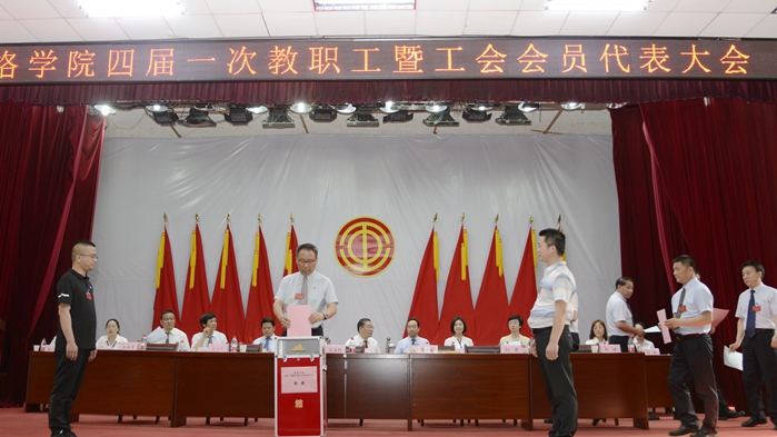 6月8日下午,我校第四屆教職工代表暨工會會員代表大會順利完成了各項議程,勝利閉幕。黨委書記龍治剛致閉幕詞,黨委副書記、校長范新會主持閉幕式,黨委副書記、工會主席彭虎軍宣讀大會決議。146名正式代表參加閉幕式。