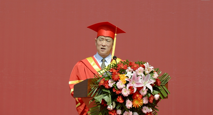 今天的典禮,既是你們的大學(xué)“畢業(yè)禮”,也是你們遠(yuǎn)行的“啟程禮”。離別之際,我以《正道直行 用奮斗點(diǎn)亮人生之光》為題,送給大家三句話,以此表達(dá)我和全校老師,對(duì)你們的美好祝福!