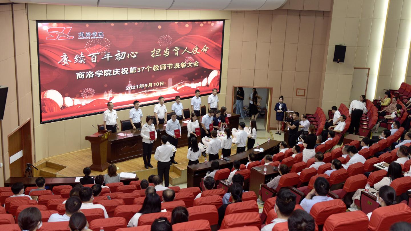 9月10日下午,我校召開慶祝第37個(gè)教師節(jié)暨表彰大會,表彰一年來在教學(xué)、科研、學(xué)生工作和管理服務(wù)等方面取得突出成績的先進(jìn)集體及個(gè)人。黨委書記張志昌出席大會并講話。校長范新會主持大會。黨委副書記彭虎軍、劉勇,副校長劉寶盈、王新軍出席大會并為獲獎(jiǎng)集體和個(gè)人頒獎(jiǎng)。各部門負(fù)責(zé)人、各院(部)黨政負(fù)責(zé)人及教師代表參加會議。