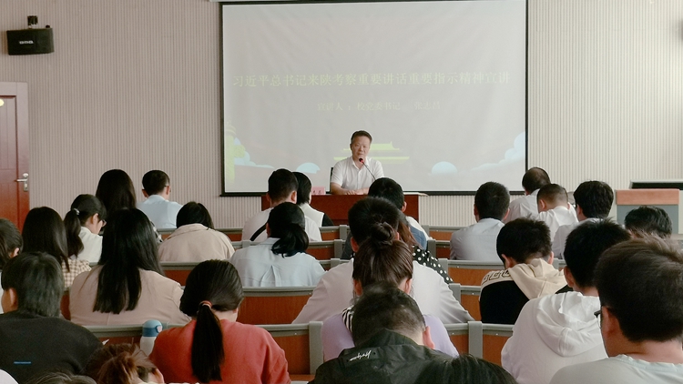 宣講會(huì)上,張志昌向全體黨員介紹了習(xí)近平總書(shū)記9月13日來(lái)陜考察的行程,并從“解放思想”“改革創(chuàng)新”“再接再厲”三個(gè)方面對(duì)習(xí)近平總書(shū)記來(lái)陜考察重要講話重要指示精神作了詳細(xì)的解讀。張志昌指出,習(xí)近平總書(shū)記時(shí)隔一年多再次來(lái)陜考察,充分體現(xiàn)了對(duì)陜西發(fā)展的關(guān)心和對(duì)家鄉(xiāng)人民的關(guān)懷和厚愛(ài)。張志昌要求學(xué)院黨總支要認(rèn)真學(xué)習(xí)領(lǐng)會(huì)、深入貫徹落實(shí)習(xí)近平總書(shū)記來(lái)陜考察重要講話重要指示精神,緊扣“圍繞中心抓黨建,抓好黨建促發(fā)展”的指導(dǎo)思想,充分發(fā)揮支部的戰(zhàn)斗堡壘作用和黨員的先鋒模范作用,積極進(jìn)行教育教學(xué)改革,不斷提升教學(xué)質(zhì)量,為學(xué)?!笆奈濉卑l(fā)展提供助力。要跳出商洛發(fā)展商洛學(xué)院,要有敢為人先的旺盛斗志,勇于探索、敢于實(shí)踐、善于創(chuàng)新,大膽改革體制機(jī)制,創(chuàng)新活力能力。全體教師要有做大先生的底氣和勇氣,把牢思想政治工作主陣地,做好學(xué)生的引路人和知識(shí)的傳授者,培養(yǎng)造就社會(huì)主義合格建設(shè)者和可靠接班人。