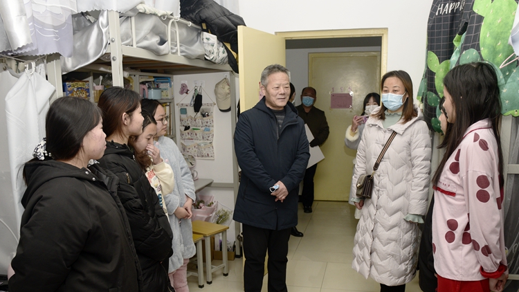 在與學(xué)生交流中,校領(lǐng)導(dǎo)詳細(xì)詢問了疫情期間學(xué)生們的思想動(dòng)態(tài),在生活和學(xué)習(xí)上遇到的困難和問題,向同學(xué)們致以新年祝福,并叮囑同學(xué)們要做好個(gè)人防護(hù),盡量減少外出,注意勞逸結(jié)合,妥善安排好學(xué)習(xí)和生活,有困難及時(shí)向?qū)W校反映。校領(lǐng)導(dǎo)表示,學(xué)校將不斷提升服務(wù)保障水平,努力解決同學(xué)們學(xué)習(xí)生活中的困難,全力以赴為同學(xué)們的安全保駕護(hù)航。