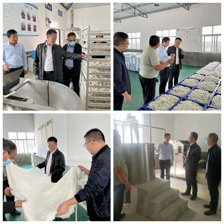 座談會結束后,張志昌先后前往村蠶桑文化展示中心、蠶絲被加工廠,深入調研村蠶桑產(chǎn)業(yè)的發(fā)展和產(chǎn)品深加工情況。