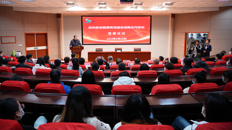 根據(jù)協(xié)議,健康商洛建設(shè)工作領(lǐng)導(dǎo)小組辦公室、商洛市衛(wèi)生健康委員會和我校三方重點(diǎn)圍繞健康商洛建設(shè)、醫(yī)療衛(wèi)生事業(yè)發(fā)展領(lǐng)域,在衛(wèi)生健康人才培養(yǎng)、醫(yī)療衛(wèi)生服務(wù)、健康商洛建設(shè)效果評價(jià)、健康狀況調(diào)查等方面開展深度合作。