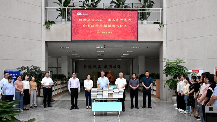 6月28日下午,陜西省地方志辦公室主任熊暉、商洛市人民政府地方志辦公室主任陳朝陽一行代表省、市地方志辦公室向我校捐贈《歷代詠陜詩詞曲集成》《商洛地區(qū)志》等志書、年鑒共89冊(件)。捐贈儀式在我校北新街校區(qū)圖書館舉行。校黨委書記張志昌,副校長王新軍出席儀式。院長辦公室、國內(nèi)合作與校友工作處、圖書館負(fù)責(zé)人,圖書館全體工作人員和學(xué)生代表參加儀式。