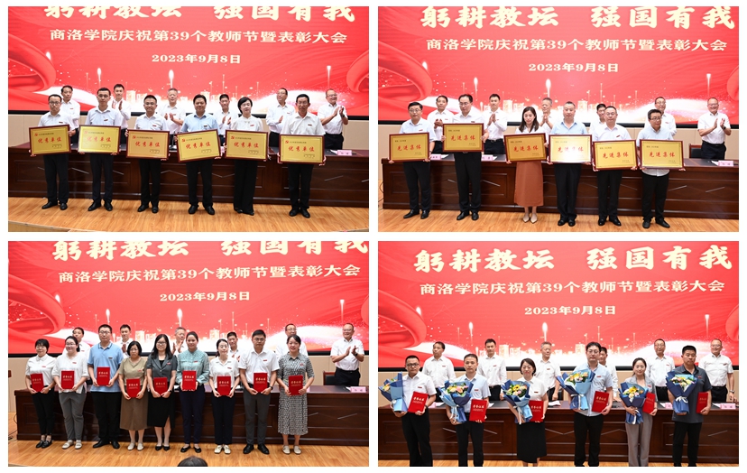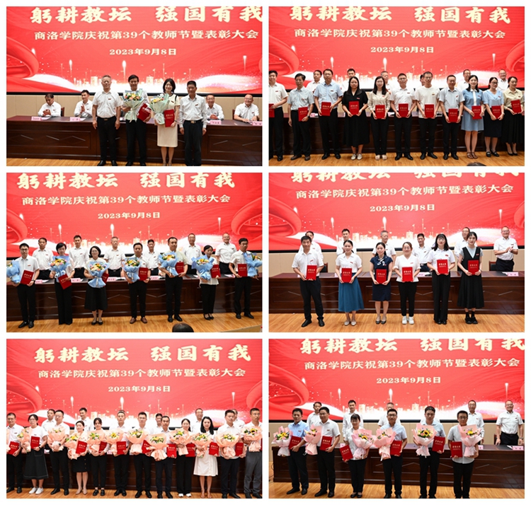 在熱烈的掌聲中,大會(huì)對(duì)我校榮獲2023年陜西省教書育人楷模、第十三屆陜西普通本科高等學(xué)校教學(xué)名師、商洛學(xué)院首屆黃大年式教師團(tuán)隊(duì)、2022年度全省教育系統(tǒng)先進(jìn)個(gè)人、學(xué)校目標(biāo)責(zé)任考核優(yōu)秀單位、2023年度先進(jìn)集體、優(yōu)秀教師、優(yōu)秀教育工作者、我最喜愛的老師以及在教學(xué)、科研和學(xué)生工作中取得突出業(yè)績的教師進(jìn)行了表彰。