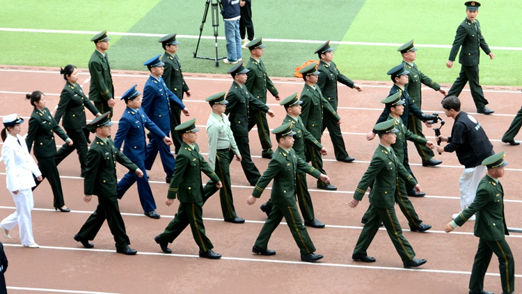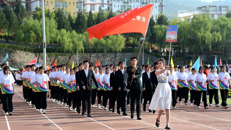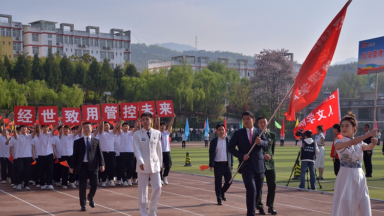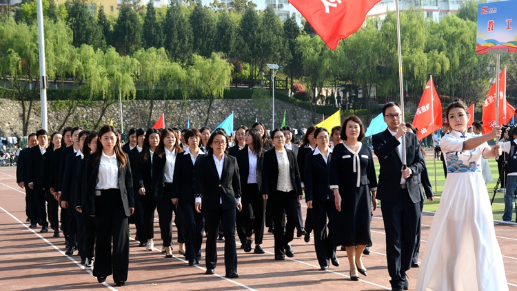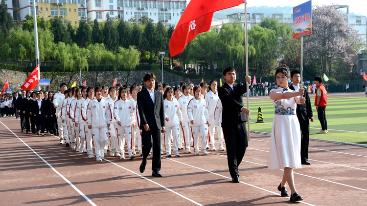伴隨著激揚(yáng)的《運(yùn)動(dòng)員進(jìn)行曲》,國(guó)旗護(hù)衛(wèi)隊(duì)、退役士兵方陣、彩旗方陣、花環(huán)方陣、裁判隊(duì)、各二級(jí)學(xué)院師生代表隊(duì)、附屬小學(xué)、附屬幼兒園和教職工代表組成的18個(gè)方陣邁著整齊穩(wěn)重、鏗鏘有力的步伐依次走過主席臺(tái),展現(xiàn)了我校師生昂揚(yáng)向上的精神風(fēng)貌。運(yùn)動(dòng)員代表?xiàng)钫衽d、裁判員代表王蒙潔分別向大會(huì)宣誓。