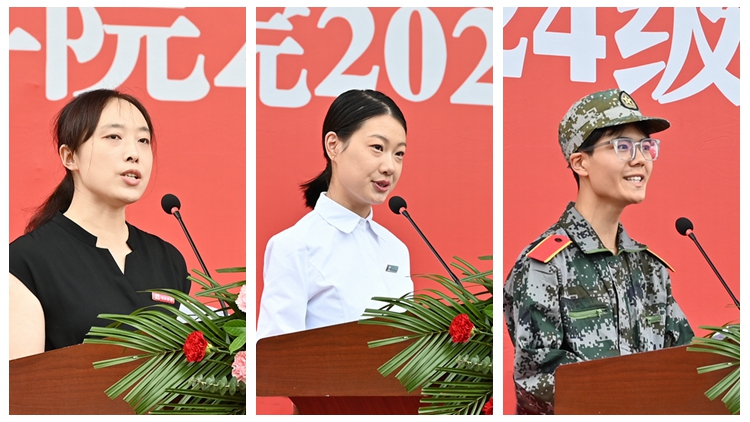人文學(xué)院漢語言文學(xué)專業(yè)譚銀鈴、健康管理學(xué)院護理學(xué)專業(yè)李易衡分別代表在校生和2024級新生發(fā)言。
