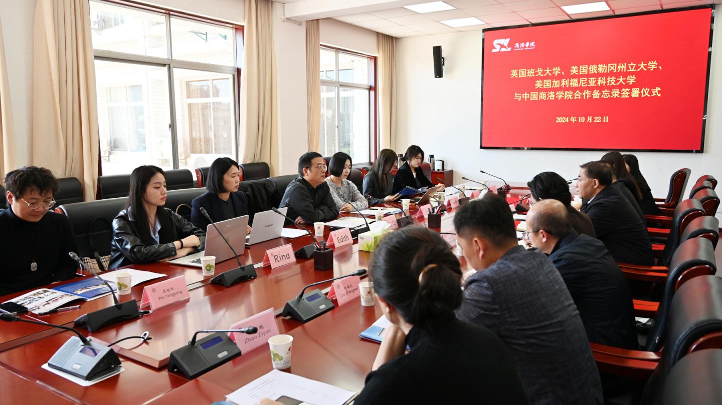 10月22日,中國教育國際交流協(xié)會國際創(chuàng)意課程項(xiàng)目辦公室主任劉思瑤,美國俄勒岡州立大學(xué)、克拉克大學(xué)、加州科技大學(xué)代表來校訪問交流。校長權(quán)雅寧會見了劉思瑤一行。副校長王新軍代表學(xué)校與俄勒岡州立大學(xué)、加州科技大學(xué)、英國班戈大學(xué)簽署合作備忘錄。