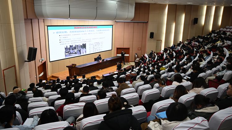 簽約儀式后,蔣莊德院士以《傳承·創(chuàng)新·融合》為題,為學院師生作學術報告。副校長王新軍主持報告會。