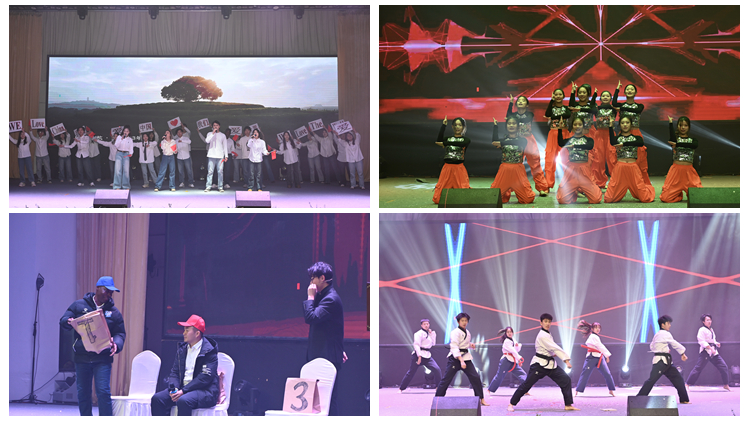 原創(chuàng)詩朗誦《遇見》,在時光長河的波光里回顧了學(xué)校發(fā)展歷程,歌頌了2024年逐光而行的不凡成就,激勵廣大師生與學(xué)校一道載夢飛翔。舞蹈《額爾古納河》展現(xiàn)了祖國山河的壯美與柔情,體現(xiàn)出人與自然的和諧共生。歌劇《沂蒙山》選段演繹了革命戰(zhàn)士大青山突圍、淵子崖戰(zhàn)役的崢嶸歷史。《我的大學(xué)時代》通過逗趣的相聲表演生動再現(xiàn)了課堂奇遇、宿舍笑談的幽默時刻。明快靈動的小合唱《唱得幸福落滿坡》,用歌聲把觀眾帶到了豐收的田野中,看到了農(nóng)民臉上洋溢的幸福笑容。二胡獨奏《戰(zhàn)馬奔騰》飽含著勇往直前的力量,訴說著英雄們的壯志豪情?!稇蚯?lián)唱》將眾多藝術(shù)形式巧妙聚集,唱念做打、五彩臉譜,一招一式盡顯東方之美。外籍教師羅杰一、王亮、艾瑪和國際創(chuàng)意課程學(xué)生合唱《We are the world》,用音樂展現(xiàn)了超越國界和文化的團結(jié)友愛。魔術(shù)表演《選擇》以絕妙的構(gòu)思、精湛的手法為觀眾帶來無盡驚喜。舞蹈表演《醉春風(fēng)》,在水墨煙雨中弄花影、戲春風(fēng),展現(xiàn)了草長鶯飛、杏花春雨的江南美景?!读餍懈枨疅烦懬啻褐瑁o燦爛的成長歲月點燃生生不息的花火。《武動華章》將太極的柔、雙截棍的巧、跆拳道的剛匯聚一處,在動靜之間帶領(lǐng)觀眾走進武術(shù)世界。健身操舞《青春就這young》整齊劃一的動作、自信美麗的笑容,展現(xiàn)了商院學(xué)子積極向上的精神風(fēng)貌。