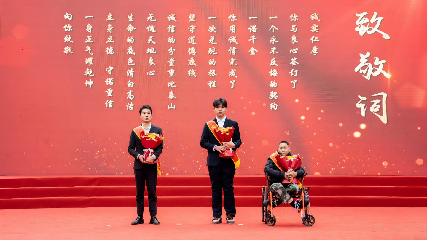 “誠實守信”類“陜西好人”現(xiàn)場頒獎(左二為我校學生雷騰)