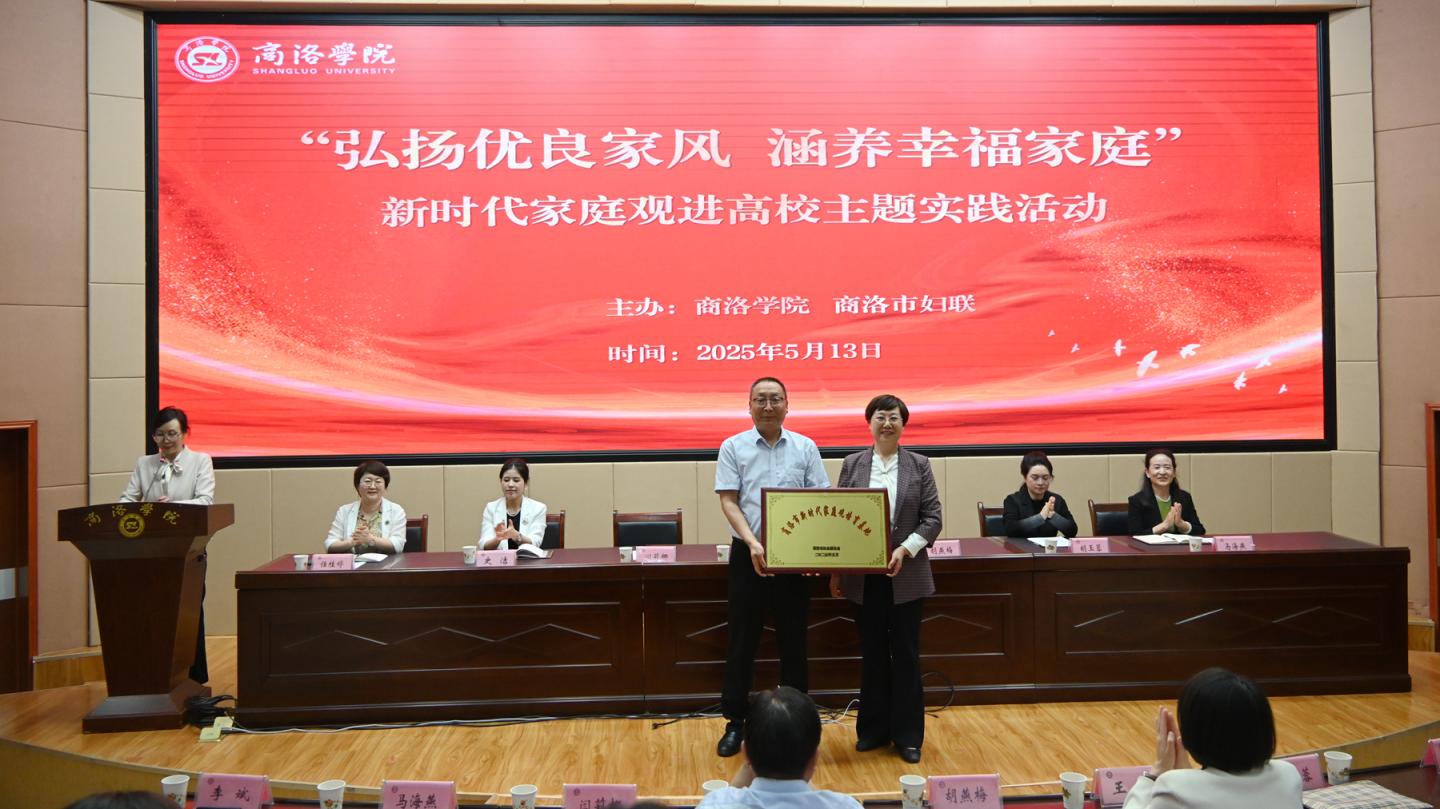 5月13日下午,商洛學(xué)院聯(lián)合商洛市婦聯(lián)舉辦新時(shí)代家庭觀進(jìn)高校主題實(shí)踐活動。市婦聯(lián)全體干部、市直相關(guān)單位青年職工和學(xué)院師生400余人共同學(xué)習(xí)《習(xí)近平關(guān)于注重家庭家教家風(fēng)建設(shè)論述摘編》相關(guān)篇目。校地合作共建“商洛市新時(shí)代家庭觀培育基地”,向全市人民群眾發(fā)出《構(gòu)建新時(shí)代家庭觀 創(chuàng)造健康幸福生活》倡議書。商洛學(xué)院校長權(quán)雅寧教授作“弘揚(yáng)優(yōu)良家風(fēng) 涵養(yǎng)幸福家庭—女性力量的文化與時(shí)代重構(gòu)”專題講座。市婦聯(lián)主席胡燕梅為“商洛市新時(shí)代家庭觀培育基地”授牌,校黨委副書記劉寶盈接牌。