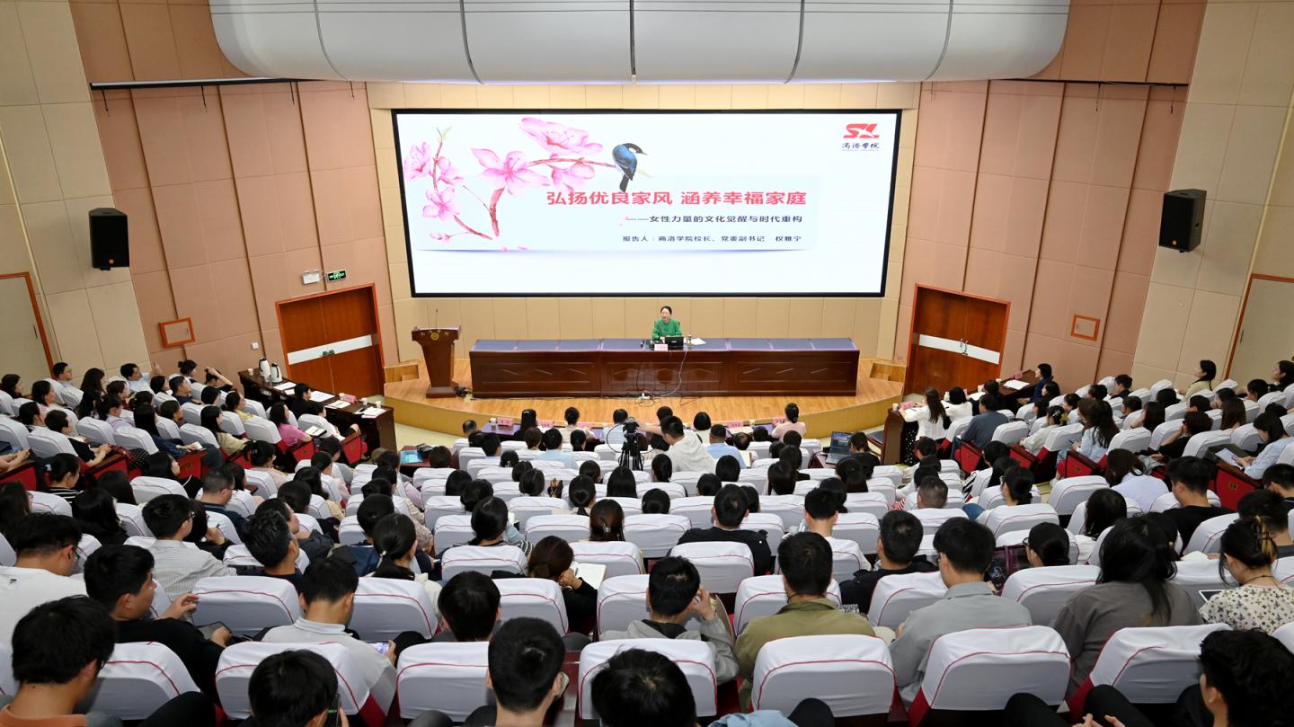 權(quán)雅寧在講座中從“歷史中的女性”“關(guān)系中的女性”“新時(shí)代女性何以可能”三個(gè)維度和與會干部共同探討女性與家風(fēng)傳承的時(shí)代密碼。她列舉了古今中外不同的女性形象,深入闡釋了女性在“身份演變”和“社會評價(jià)”中呈現(xiàn)出的復(fù)雜多樣的內(nèi)在關(guān)系。從“婚姻制度的選擇”“性的生物基礎(chǔ)”“愛情與親情的感情潤色”三個(gè)層次分析了婚姻家庭中的兩性關(guān)系,倡導(dǎo)師生樹立性別平等觀念,呼吁女性在不同身份角色中做到自信、自強(qiáng)、獨(dú)立,努力實(shí)現(xiàn)自我價(jià)值,為社會進(jìn)步貢獻(xiàn)“她力量”,為新時(shí)代家風(fēng)建設(shè)添磚加瓦。